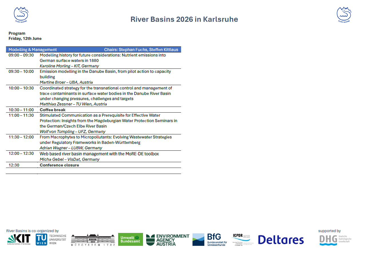 For our River Basins Conference 2026, we prefer to give more room to discussions right after the presentations. In this sense, you will have 20 minutes to present your topic, followed by a 10 minutes discussion.